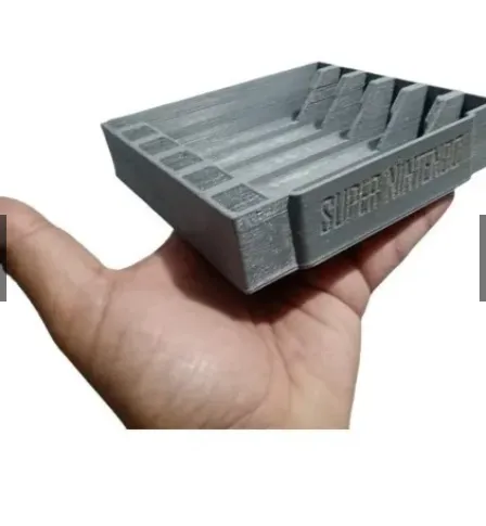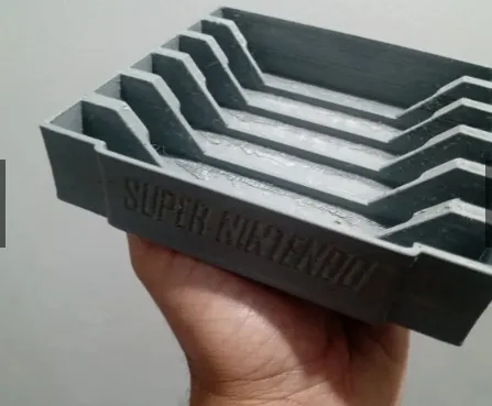 Esse suporte garante a sua coleção de fitas de Super Nintendo um novo jeito de expô-la e deixa-lo a mostra em seu cantinho gamer .Produto de ótima qualidade para que você possa confiar e usufruir com toda tranquilidade. Fabricado em uma impressora com matéria-prima ABS* proporcionando um melhor acabamento na superfície das partes externas e internas proporcionando um melhor conforto durante seu uso.